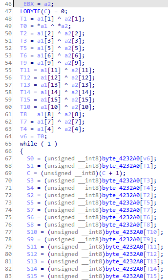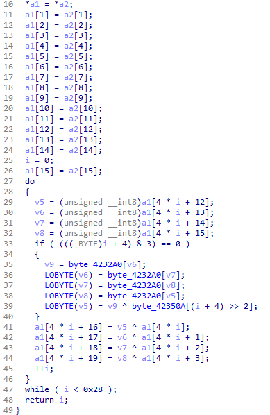여기서 byte_4232A0은 AES Sbox이고, 파일은 PNG 파일이므로 앞 16byte에 무엇이 들어갈지 알 수 있습니다.